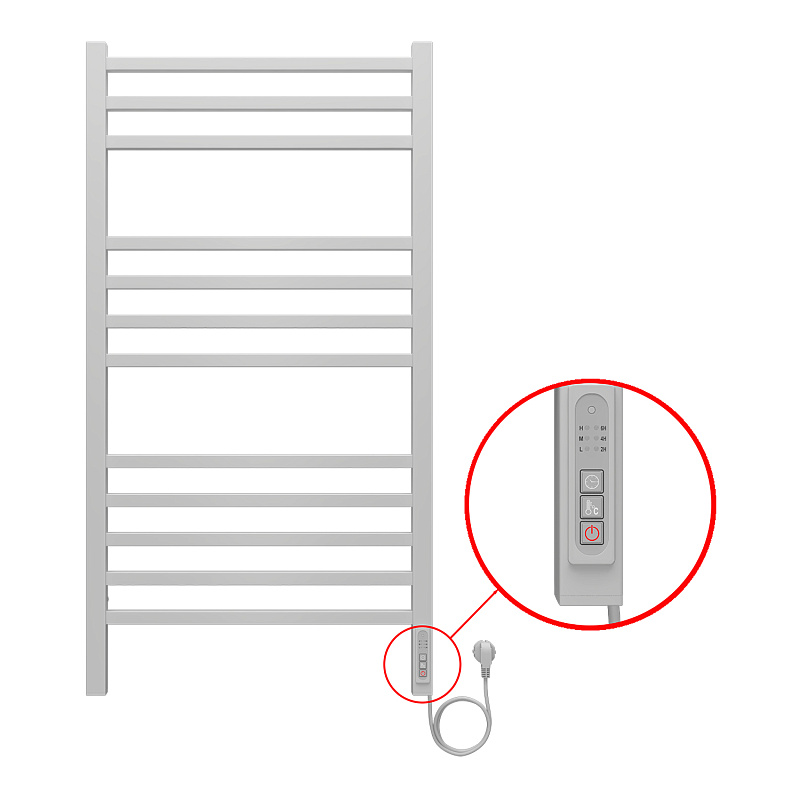 Полотенцесушитель электрический AZARIO ANCONA 500/1000 квадрат, 12 секций, диммер справа, белый (AZ71850W)