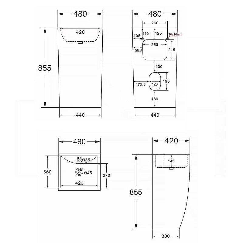 —Раковина напольная Azario Комелла 480х420х855 отдельностоящая прямоугольная, черный матовый (AZ-314MB)