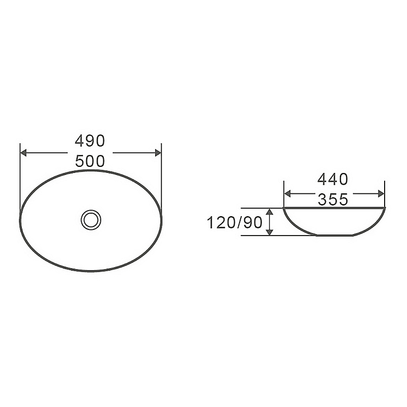 Раковина накладная Azario 500х355х90 санфаянс, белый глянец (AZ-1025-S)