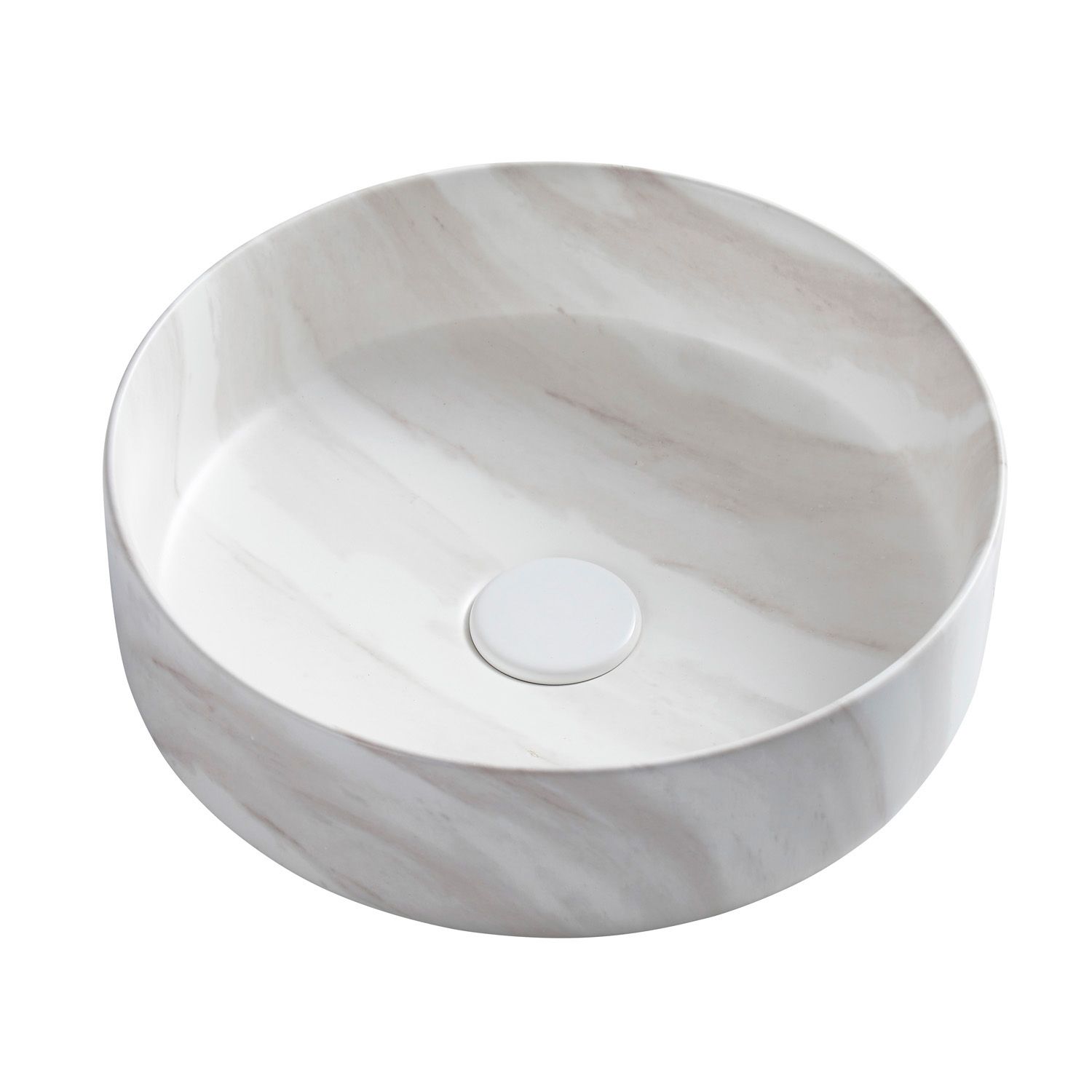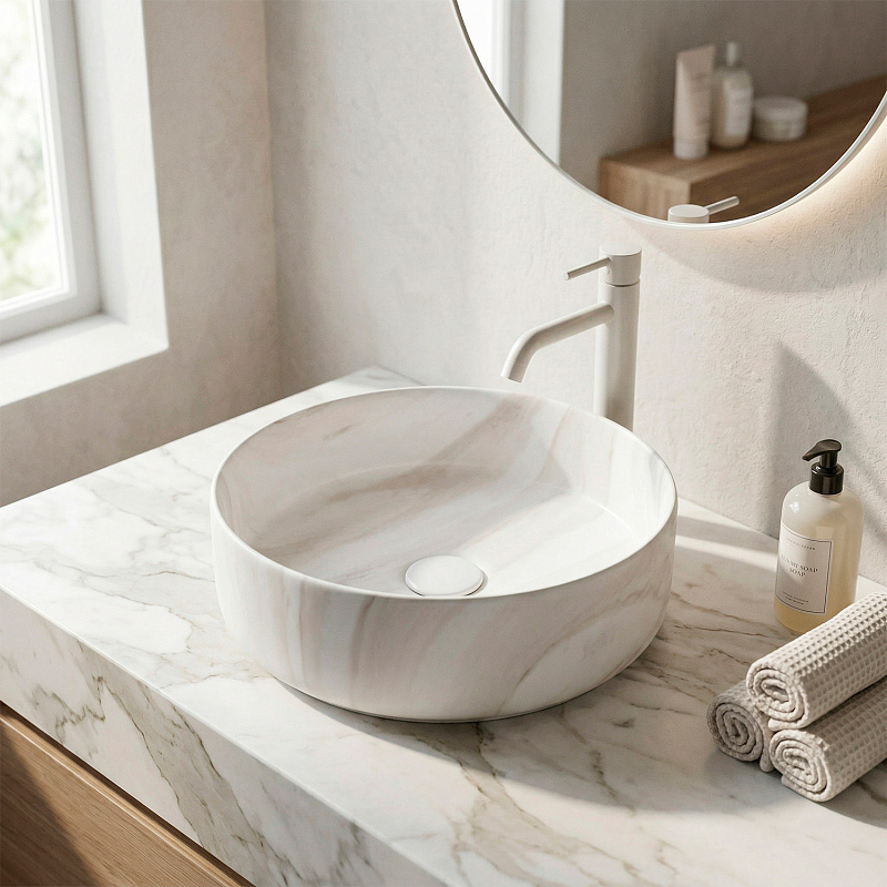 —Раковина-чаша Azario 355х355х120 накладная, круглая, светлый мрамор (AZ-3134-M817)