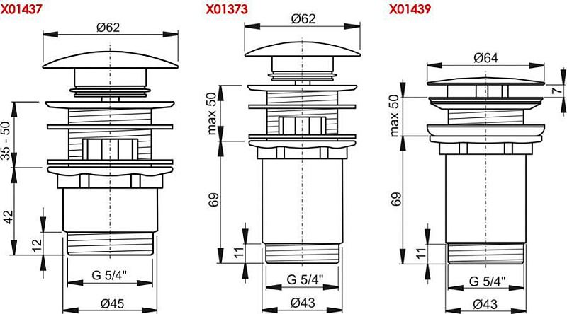Универсальный слив для умывальника ClickClack предназначен для умывальников со сливом диаметром 46 мм