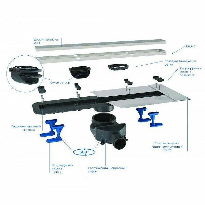 Вид решетки: двухсторонняя (с щелью для воды / под плитку).