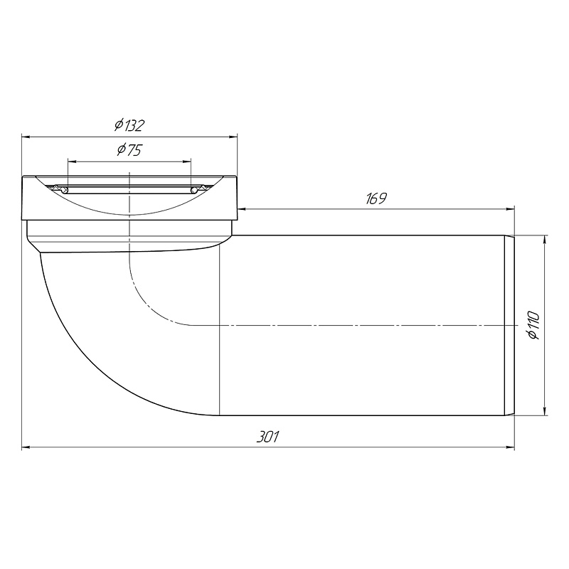 Труба для подключения унитаза к канализации угол 90° диаметр 110мм. Для пластиковых труб