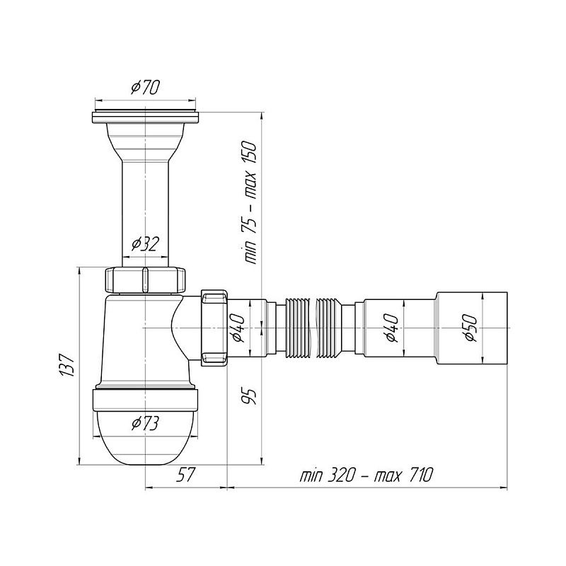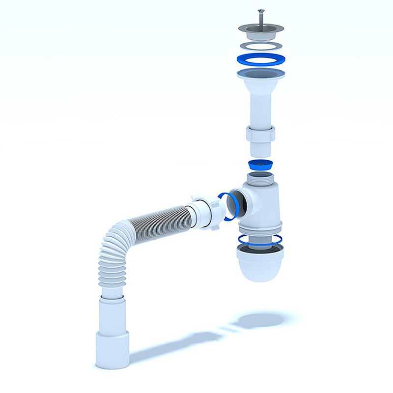 • Сифон сливной АНИ пласт C0115 для кухонных моек с диаметром сливного отверстия 50-60 мм