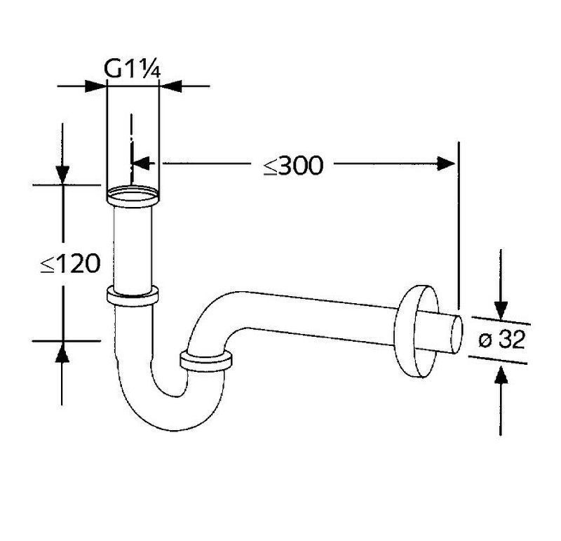 Сифон для раковины Kludi 1026505-00 трубчатого типа. Цвет: хром.