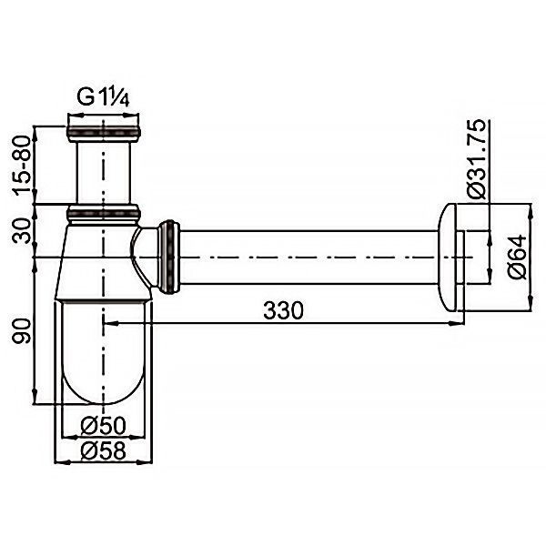 —Сифон для раковины AZARIO без выпуска, G 1 1/4 латунь, хром (AZ-107-CHR)