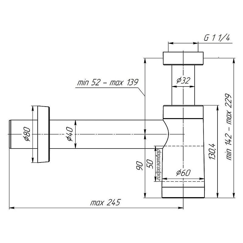 Бутылочный сифон 1 1/4"*40 с переходной трубкой диаметром 40 мм — это практичный и удобный элемент сантехнической системы, предназначенный для подключения раковины к канализационной трубе. Изготовлен из прочного белого пластика, устойчивого к химическим воздействиям и перепадам температуры. Компактная конструкция «бутылочного» типа обеспечивает легкий доступ для очистки и надежную защиту от засоров и неприятных запахов. В комплект входит переходная трубка диаметром 40 мм, позволяющая подключение к стандартной канализации. Преимущества: Стандартное присоединение 1 1/4" Диаметр выпускной трубки: 40 мм Устойчив к коррозии и агрессивным средам Легкий монтаж и обслуживание Подходит для большинства моделей раковин Идеален для установки в ванных комнатах, кухнях и других бытовых помещениях.