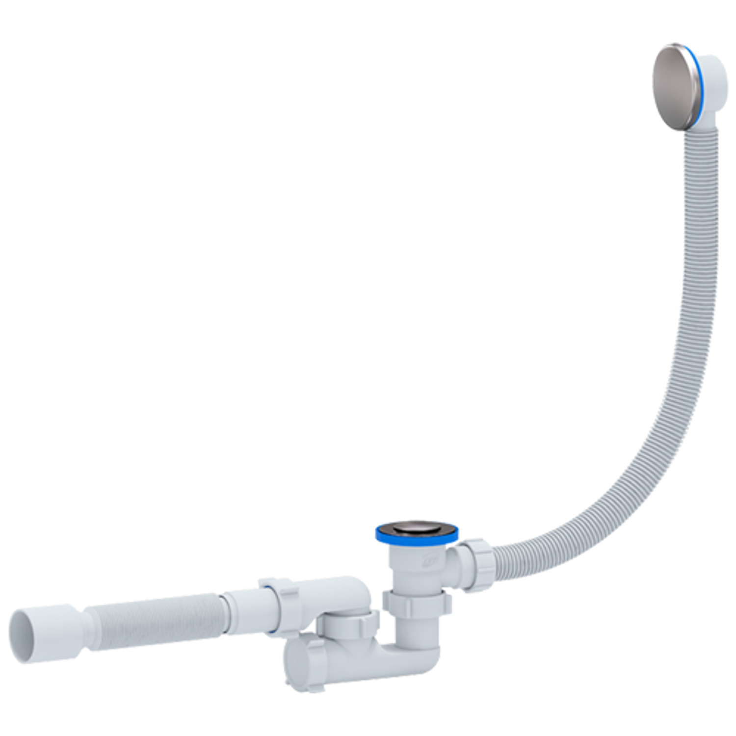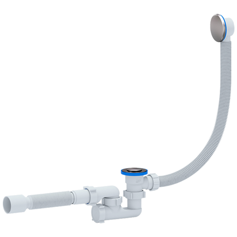 —Слив-перелив Ани Пласт для ванны автомат регулируемый клик-клак 1 1/2"х40 с гофрой 40/50 с сеткой (EC255)