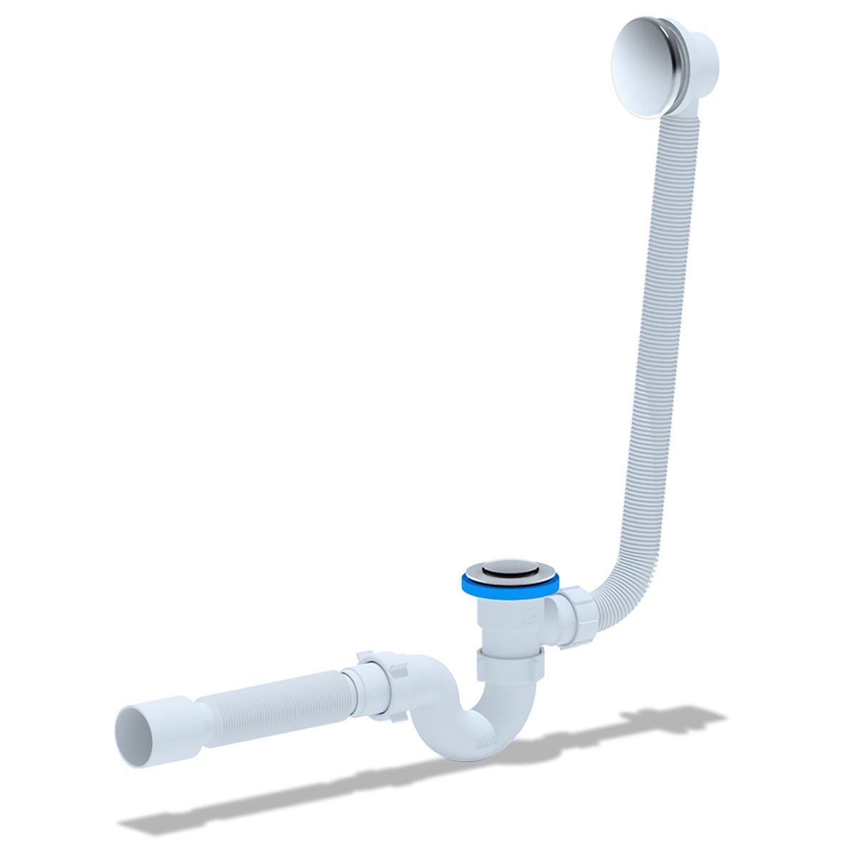 • Сифон сливной АНИ пласт EC155S для ванны с выпуском "клик-клак" с сеткой и переливом.
