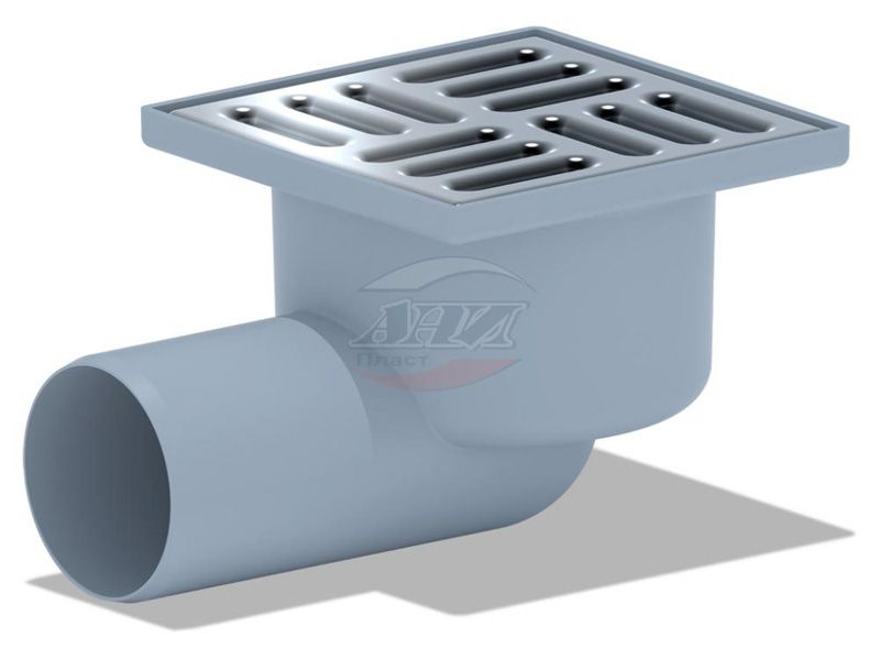 —Трап Ани Пласт горизонтальный нерегулируемый с выпуском 50мм, с нержавеющей решеткой 100х100 сухой (TQ5102)