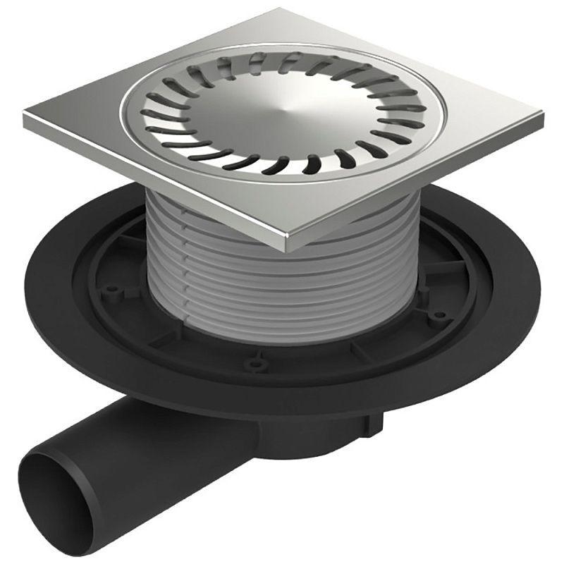 Душевой трап Azario 150х150 Dn 50 с решеткой из нержавеющей стали, гидрозатвором, горизонтальный (AZ-381 E)