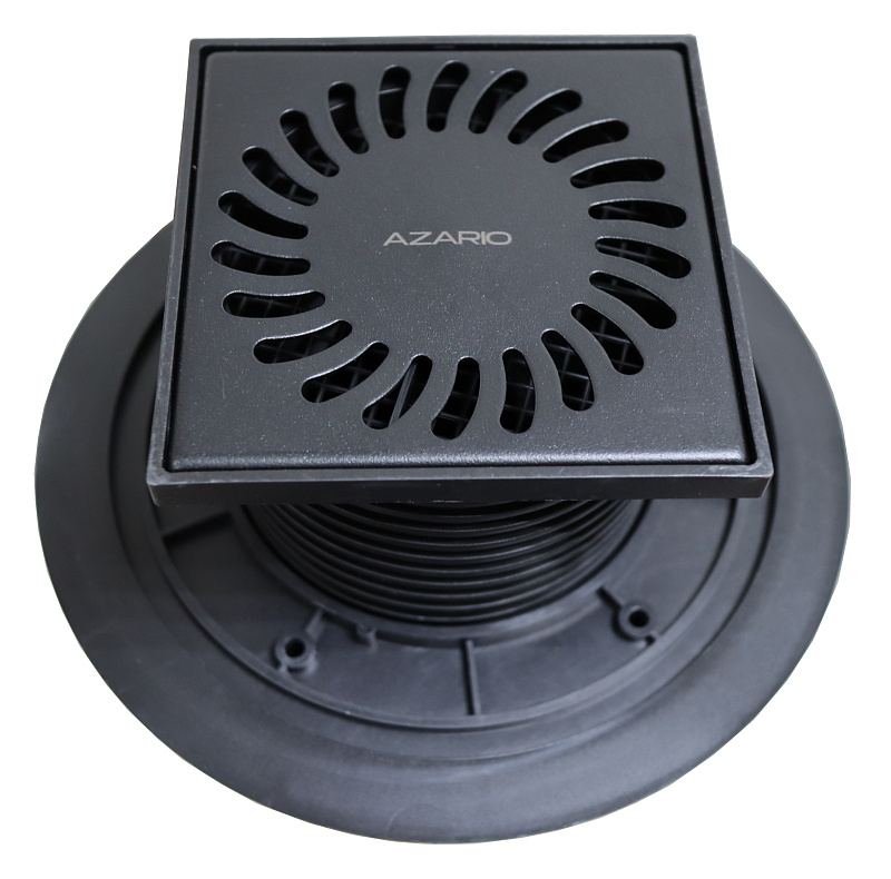 —Душевой трап Azario 125х125 D50 вертикальный слив, черный матовый (AZ-384 AC)