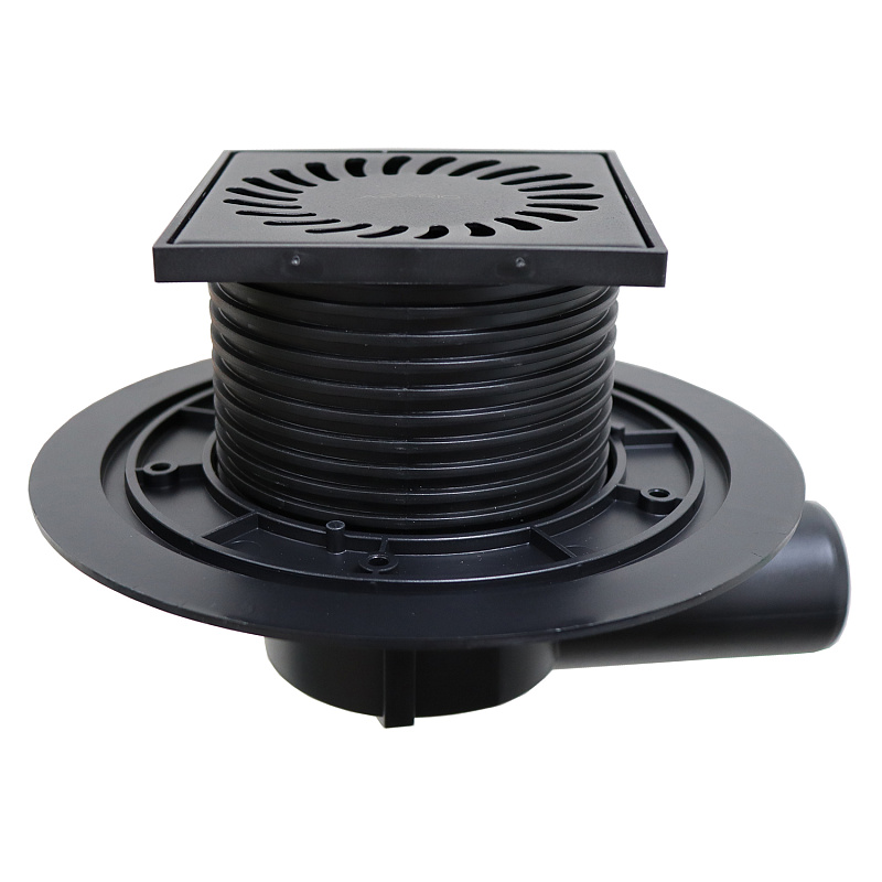 Душевой трап Azario 125х125 D50 горизонтальный слив, черный матовый (AZ-381 AC)