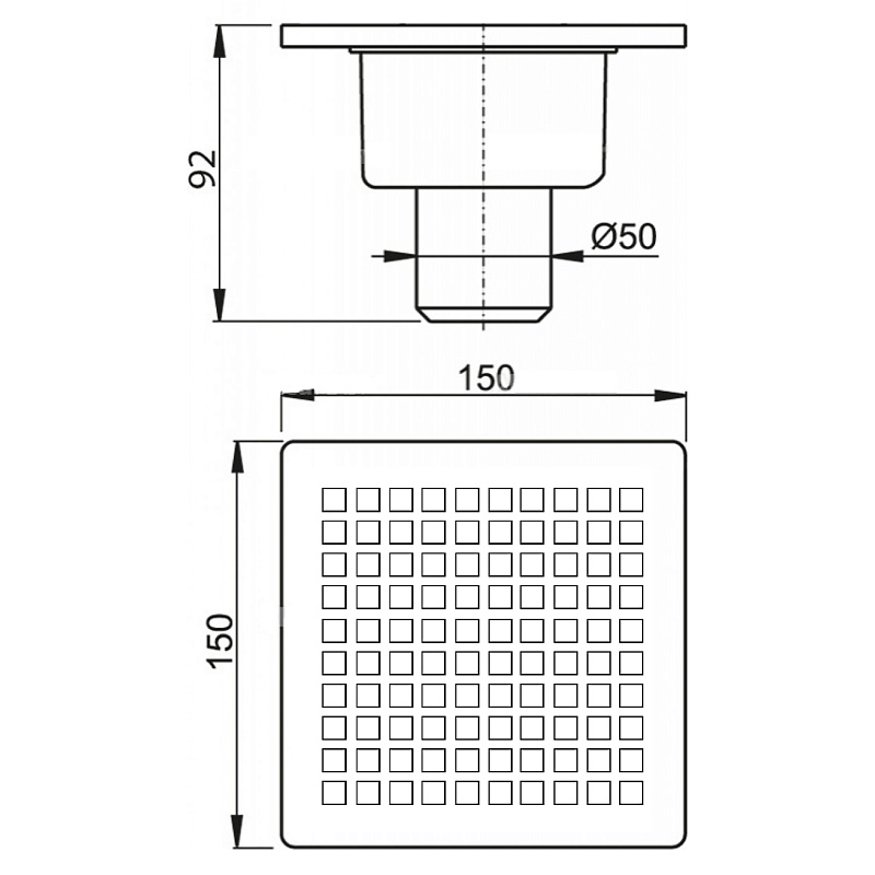 Душевой трап Loranto LINE 150x150 мм прямой сток, решетка из нержавеющей, гидрозатвор сухой (3012.0A050K.015.1)
