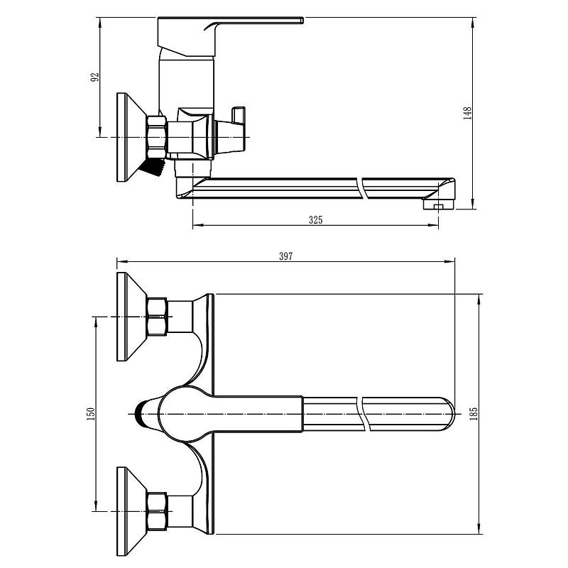 —Смеситель для ванны LORANTO Норма керамический картридж, длинный излив, хром (LR90501000)