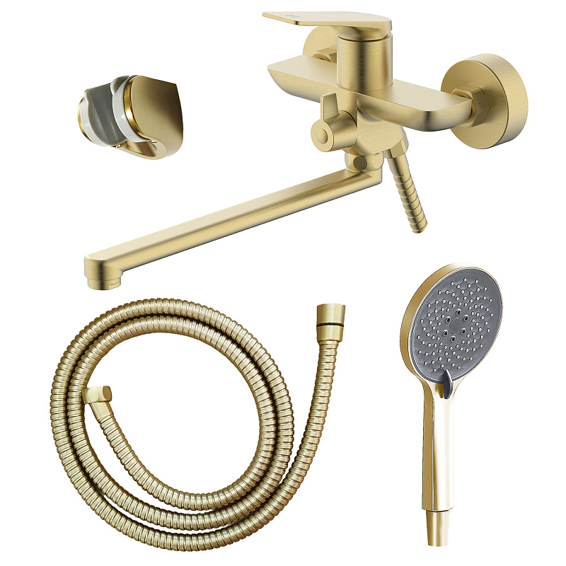 —Смеситель для ванны Azario Lursy керамический картридж, длинный излив, с ручным душем, шланг 150 см, золото матовое (AZ-K1749MG)
