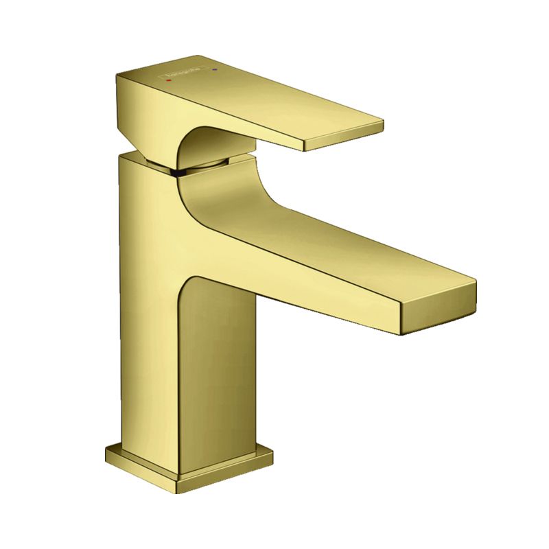 Смеситель для раковины 100, Metropol, однорычажный, с рычаговой рукояткой, со сливным клапаном Push-Open полированное золото 32500990