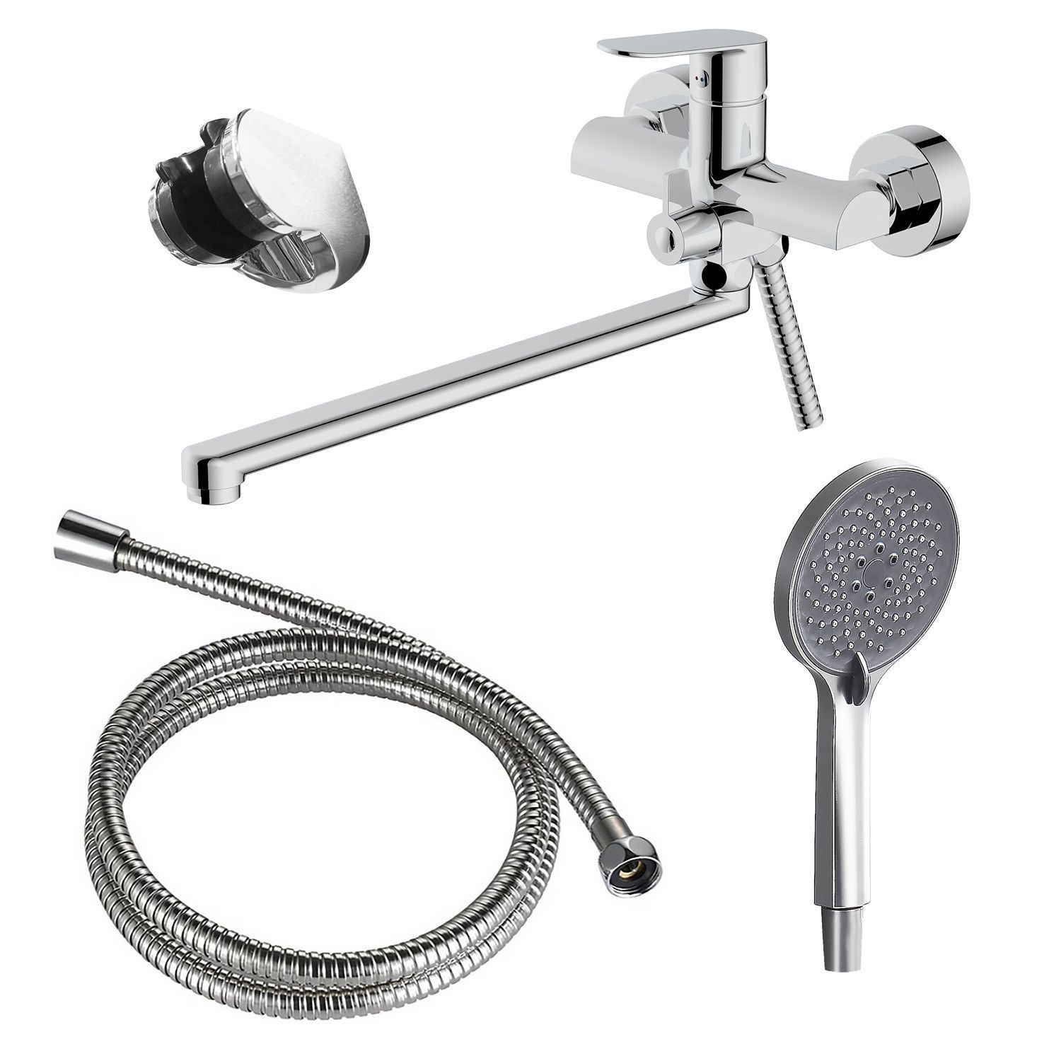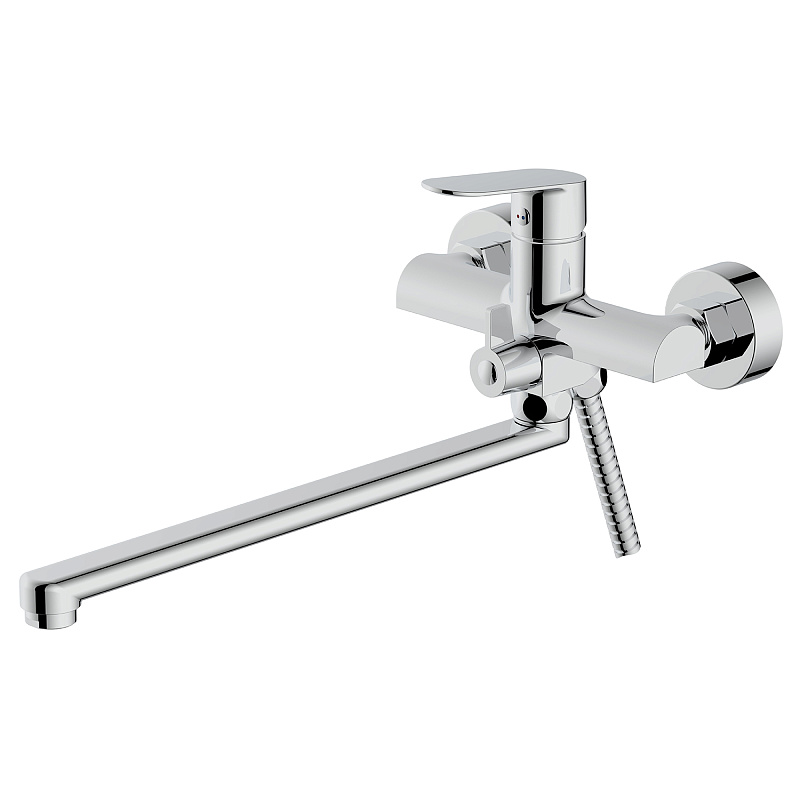 —Смеситель для ванны Azario Alanti керамический картридж, длинный излив, с ручным душем, шланг 150 см, хром (AZ-K1732)