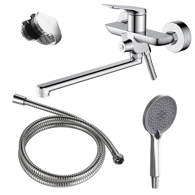 —Смеситель для ванны Azario Lursy керамический картридж, длинный излив, с ручным душем, шланг 150 см, хром (AZ-K1749)