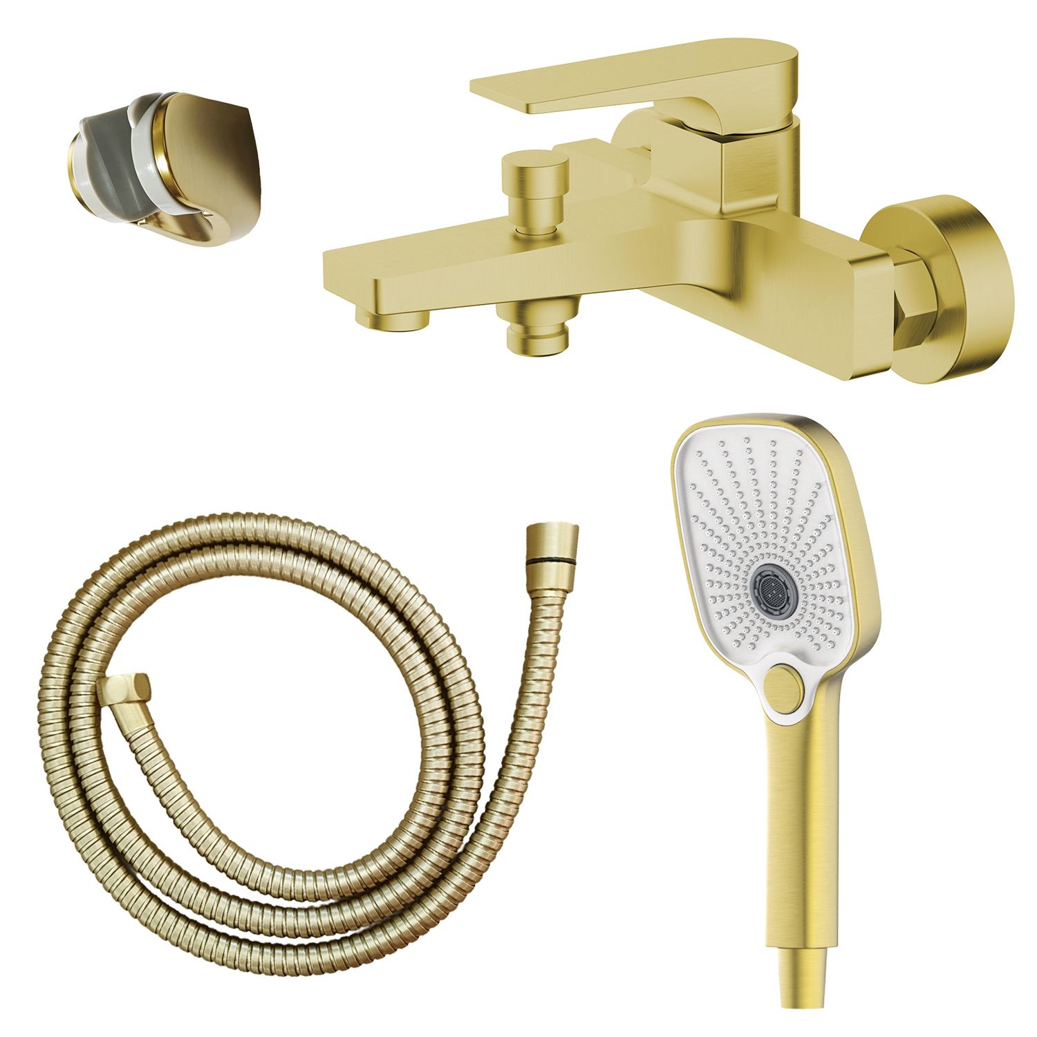 —Смеситель для ванны Azario Arida керамический картридж, с ручным душем, шланг 150 см, золото матовое (AZ-K3054MG)