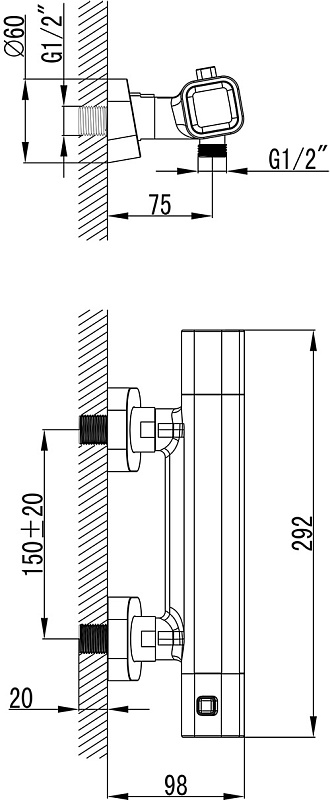 —Смеситель для душа Ravak 10° Termo 300 TD 033.00/150 с термостатом, хром (X070102)