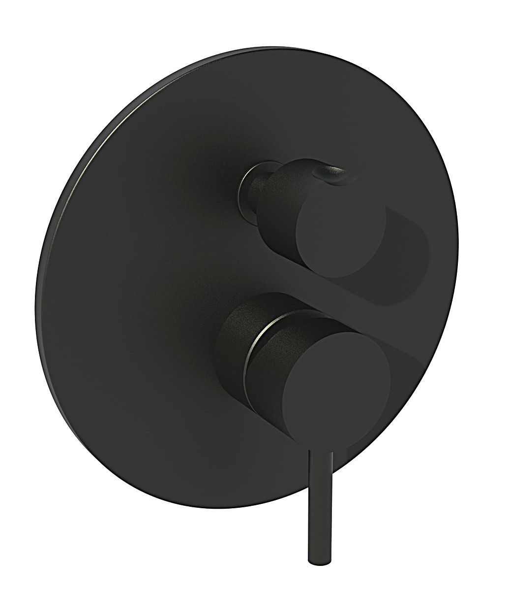 Смеситель встраиваемый для душа на 2 выход с накладкой из металла диам.200мм, девиатор-картридж, 2 положения+1 комбо, Черный матовый