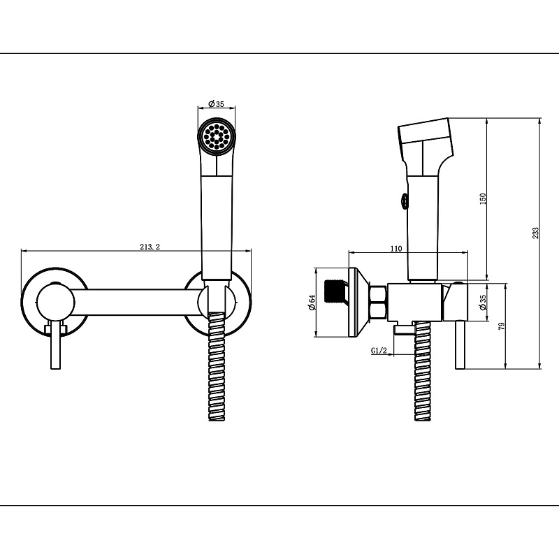 —Гигиенический душ Azario Dies со смесителем, керамический картридж, шланг 150 см, графит (AZ-KFX04GR)