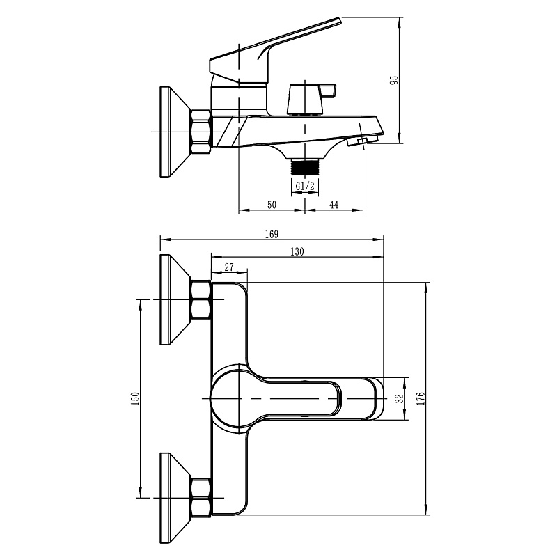 —Смеситель для ванны LORANTO TINA керамический картридж, с полным душевым набором, хром (LR30362001)