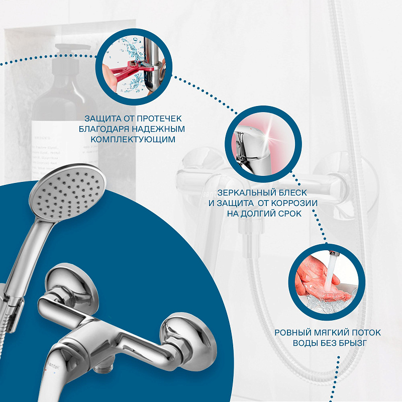 —Смеситель для душа Santek Нико с ручным душем, керамический картридж, хром (WH5A20005C001)