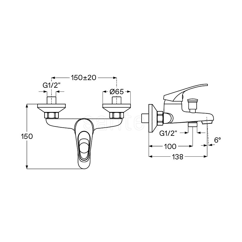 —Смеситель для ванны Santek Баус с ручным душем, керамический картридж, хром (WH5A10010C001)
