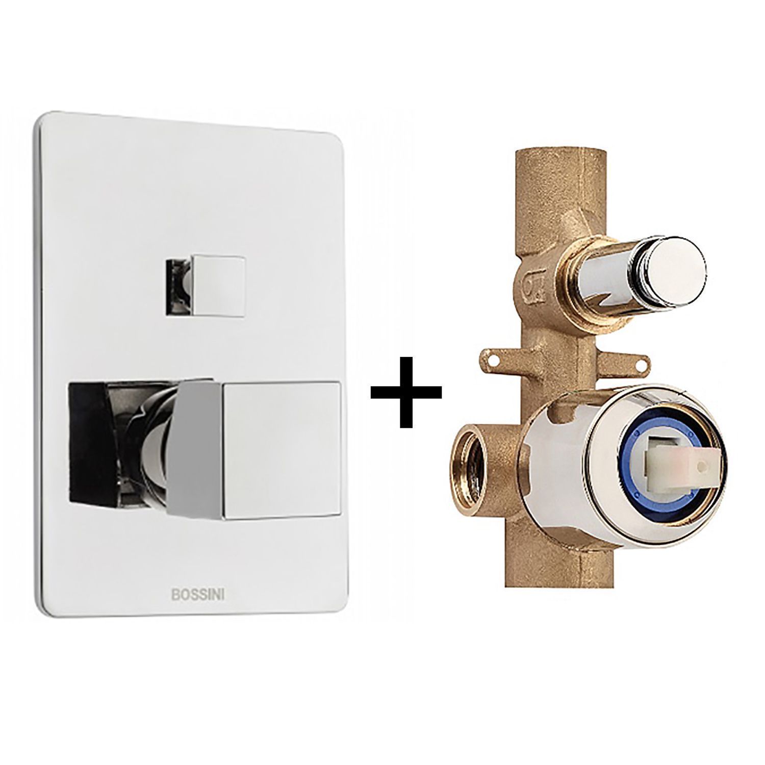 —Комплект Bossini CUBE Смеситель для душа, встраиваемый, 2 выхода, внешняя часть, хром + Встраиваемая часть смесителя с девиатором 2 направления (Z00063.030+Z00005)