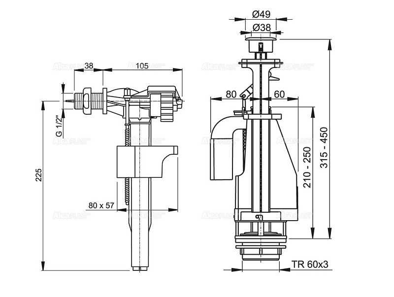 Сливная арматура Alca Plast с двойной кнопкой, боковое подключение 1/2" (SA08AK 1/2" CHROM)