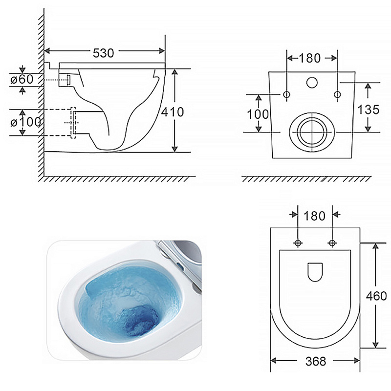 • Подвесная конструкция: Подвесной монтаж создает ощущение легкости и простора в ванной комнате, а также значительно упрощает процесс уборки пола.
