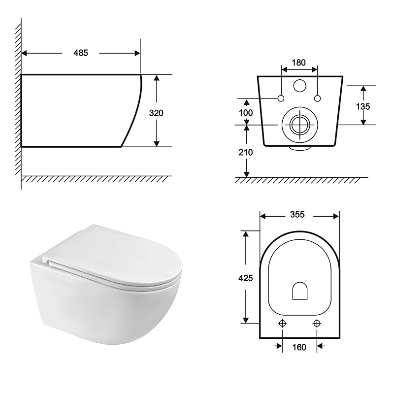 Компактные размеры: Габариты 355х485х320 мм делают эту модель идеальным выбором для ванных комнат любого размера, включая небольшие помещения.