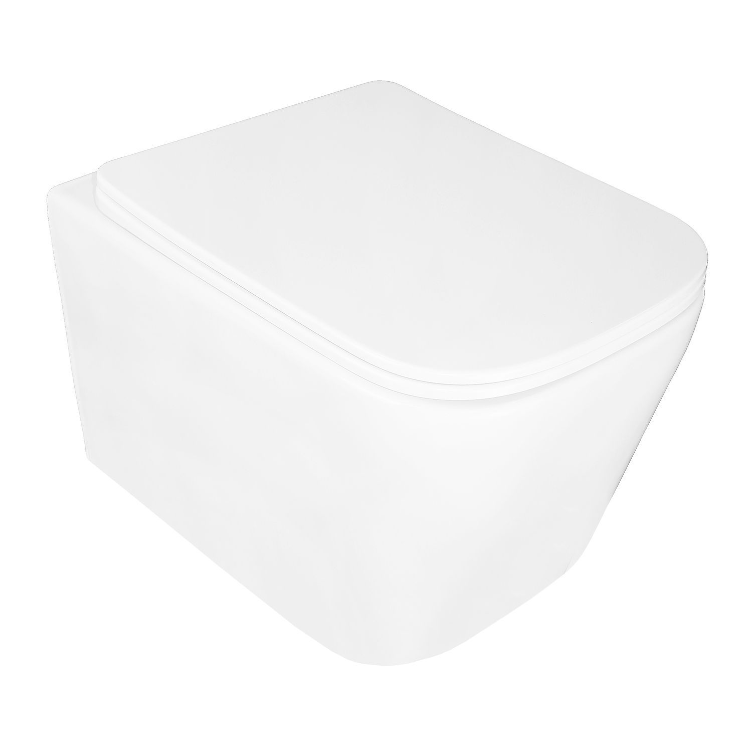 — Унитаз подвесной Loranto Delphi 340х485х290 безободковый, с системой смыва "Скрытое Торнадо", в комплекте с быстросъемным сиденьем микролифт (91343)