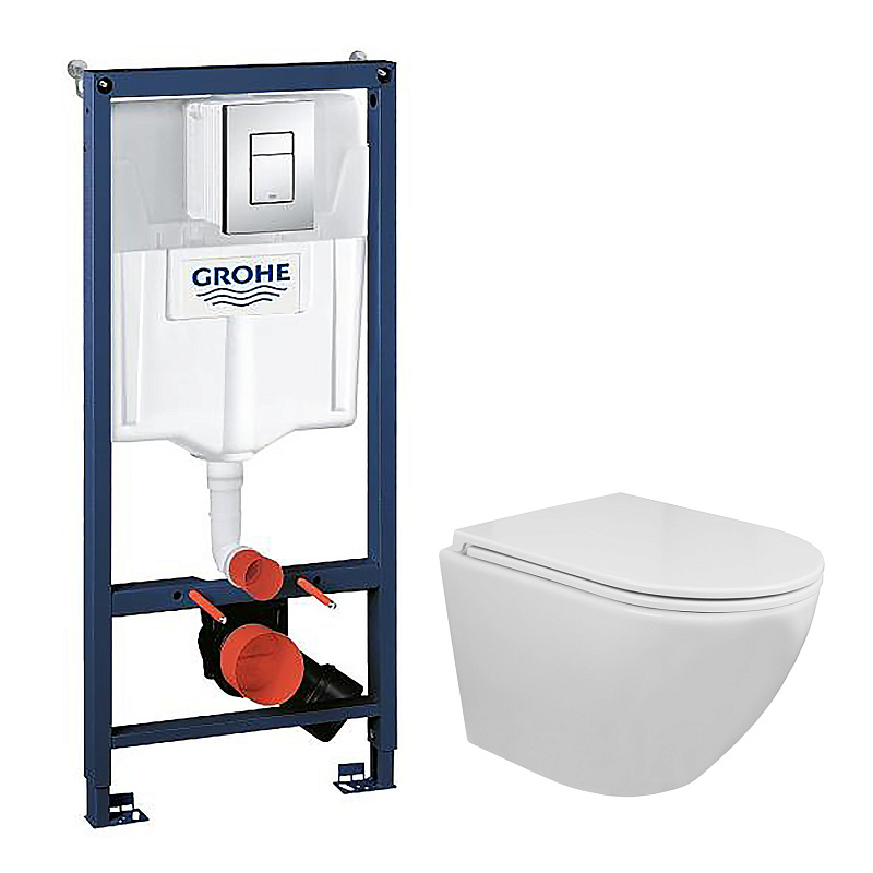 —Сет 3 в 1 инсталляция Grohe Rapid SL с клавишей смыва + подвесной унитаз Azario Grado c быстросъемным сиденьем микролифт (38772001+AZ-0046N)