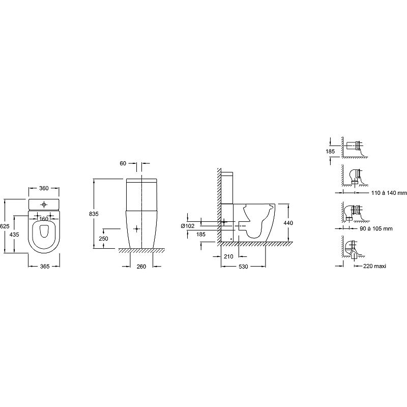 Габариты чаши унитаза (ШхВхД): 365х440х625 мм.