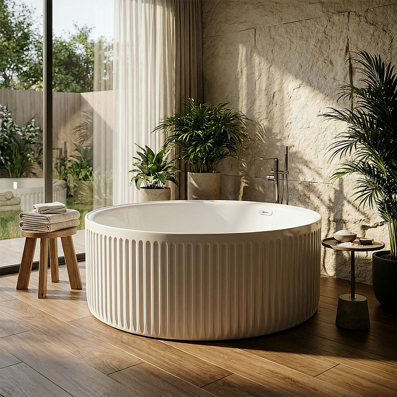 Рифленая поверхность: Уникальная рифленая текстура внешней поверхности ванны придает ей неповторимый шарм и тактильную привлекательность.