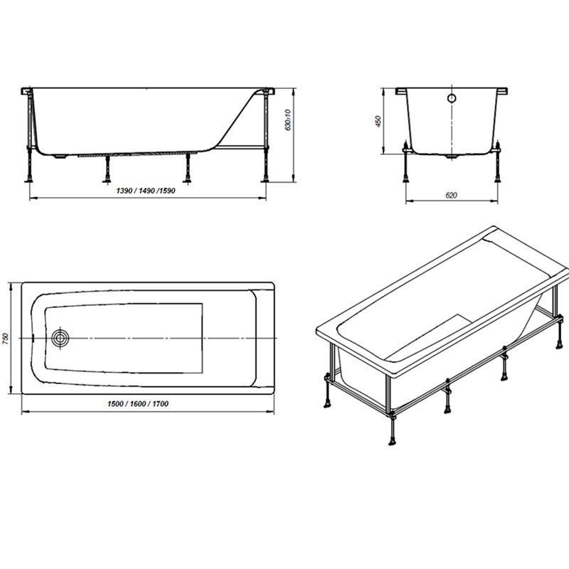 Ванна акриловая Roca ELBA прямоугольная 160х75 белая
