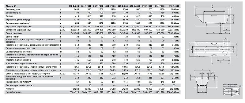 Толщина ванны, мм