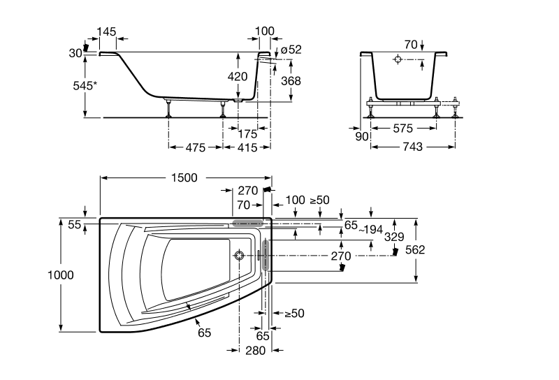 Ванна акриловая Roca HALL Angular 150х100, асимметричная, левосторонняя