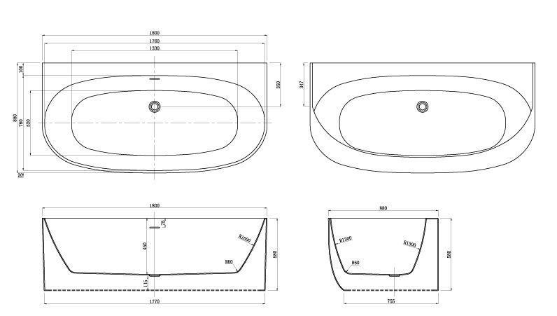 —Ванна акриловая Azario Cambridge 180х88 пристенная (CAM18090)