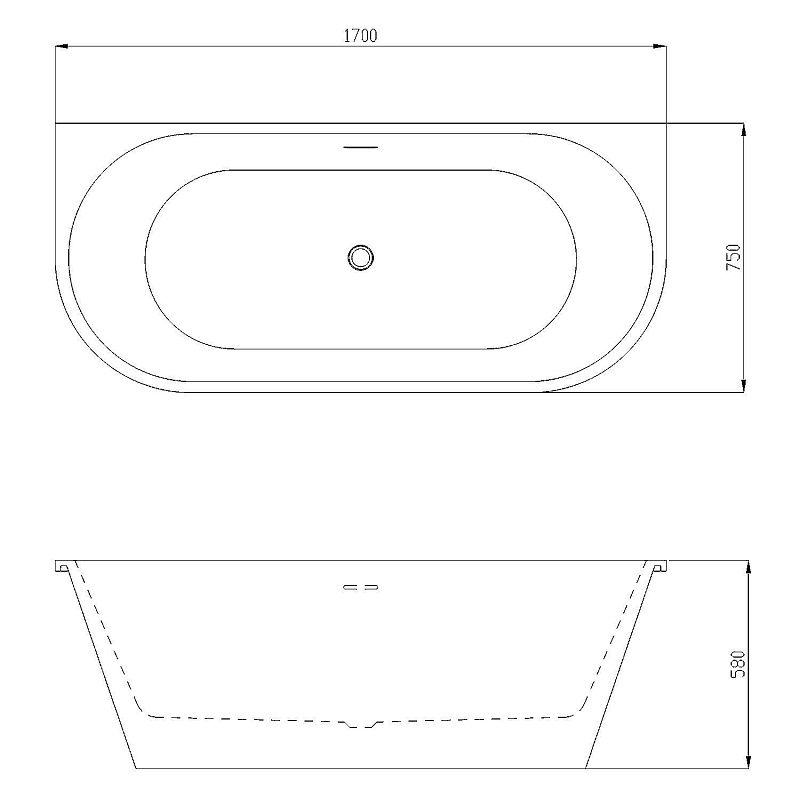 Ванна акриловая, свободностоящая, в комплекте с сифоном и металлической рамой.