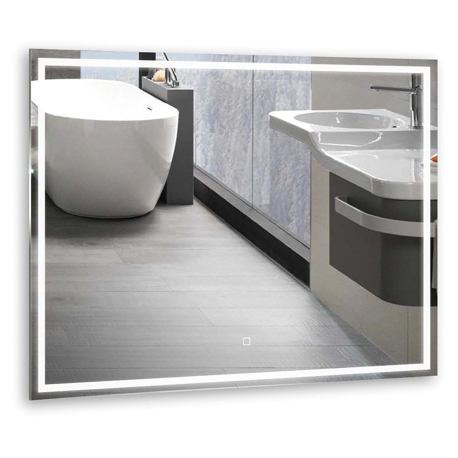 Зеркало с LED-подсветкой и сенсорным выключателем прямоугольной формы станет отличным украшением ванной комнаты, гостиной или спальни.